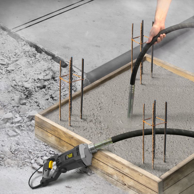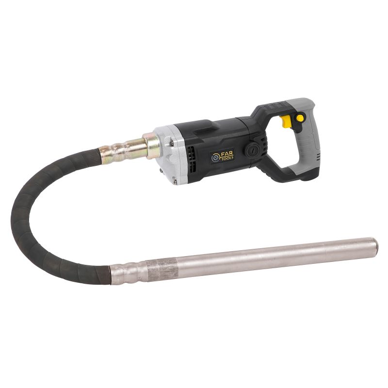 Vibreur à béton électroportatif puissance 1200W équipé d'une aiguille vibrante de longueur 1,25m et diamètre 35mm. Construction de la partie immergée 100% étanche et anti corrosion (aiguille acier avec revêtement anti-corrosion). Vitesse de rotation 4200 tr/min et oscillation >1,2mm. Idéal pour obtenir un béton de haute résistance et régulier en coffrage. La pervibration du béton (serrage) permet l'évacuation des bulles d'air qui peuvent être des amorces de rupture à long terme. La vibration du béton permet également de s'assurer que tous les interstices de la structure coffrée et ferraillée sont comblés. La machine est munie d'un interrupteur bloquant et d'une poignée ergonomique soft-grip pour un grand confort d'utilisation. Pour faible section de granulométrie et idéal jusqu'à 10m3 de béton. Cordon électrique avec prise étanche PRCD pour un travail en totale sécurité.