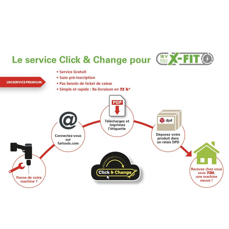 Ce produit fait partie de la gamme plateforme FARTOOLS X-FIT 18V permettant d'utiliser la/les même(s) batterie(s) sur l'ensemble des machines de la gamme outillage électroportatif ou outillage jardin.
