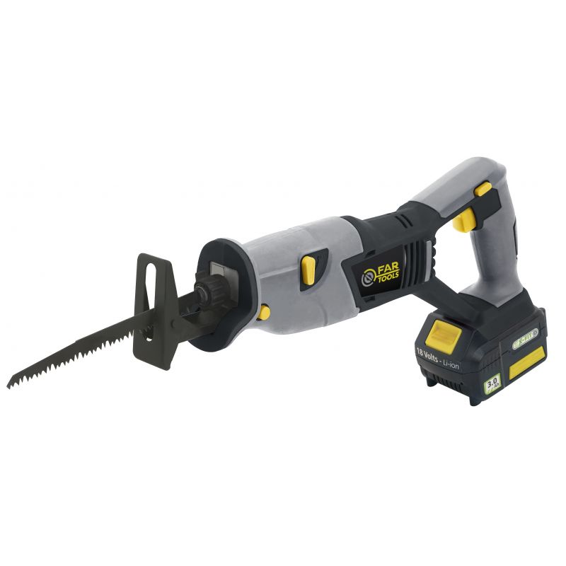 XF-SAW Scie sabre sans fil 18V - Fonction pendulaire - Vitesse variable 0 à 3000cps/min - Changement de lame rapide et sans outil - Profondeur de butée/sabot réglable - Poignées avec protection isolante, confortable et ergonomique soft-grip - Pour scier/couper/tronçonner sans effort dans le bois (< 90mm), le métal (< 10 mm) et les branches d'arbres (< 90mm) - Livrée avec une lame bois et une lame métal - Vendue sans batterie - Ce produit fait partie de la gamme plateforme FARTOOLS X-FIT 18V permettant d'utiliser la/les même(s) batterie(s) sur l'ensemble des machines de la gamme outillage électroportatif ou outillage jardin.