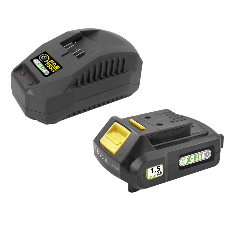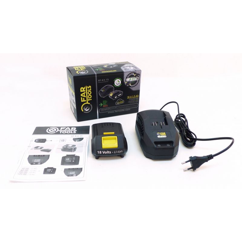 XF-KIT15 Kit : Batterie 18V Lithium-ion, capacité 1,5Ah, et Chargeur rapide, compatibles avec toute la gamme FARTOOLS X-FIT