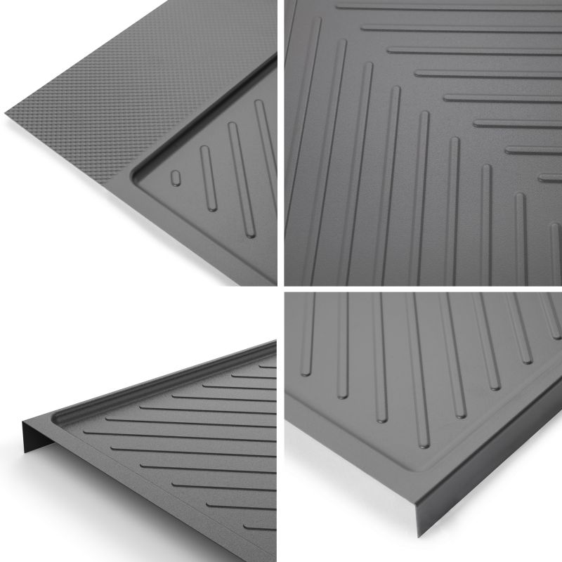 Le tapis de protection modèle Sink pour fond de meuble de cuisine est spécialement conçu pour protéger le fond des meubles de l'humidité et des éclaboussures. Entièrement en plastique et de couleur gris anthracite, cette protection donne un aspect moderne et minimaliste dans le fond du meuble.