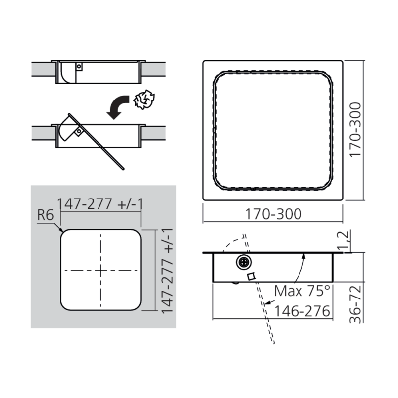 Trappe carrée encastrable pour plan de travail, 300 x 300mm