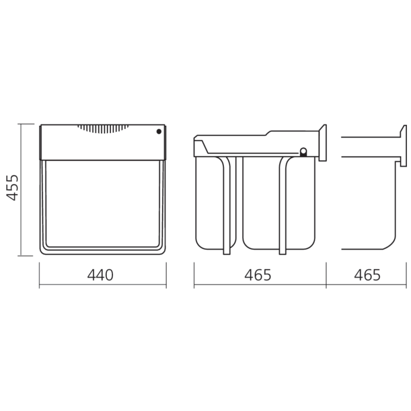 Cette poubelle de tri sélectif se compose de 2 bacs en plastique robuste d'une contenance totale de 49 litres. Sa largeur de 440mm vous permet d'installer cette poubelle coulissante dans un meuble de cuisine de largeur 500mm minimum.