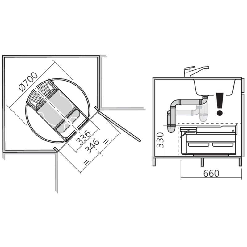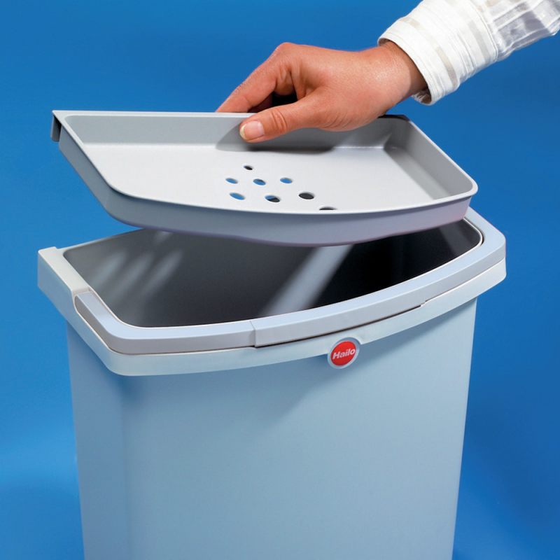 La poubelle Rondo a une faible hauteur ce qui lui permet de s'intégrer sous un évier sans être gênée par le siphon. Montée sur coulisses à billes à sortie totale pour accéder à l'intégralité des 2 bacs de 18 litres.