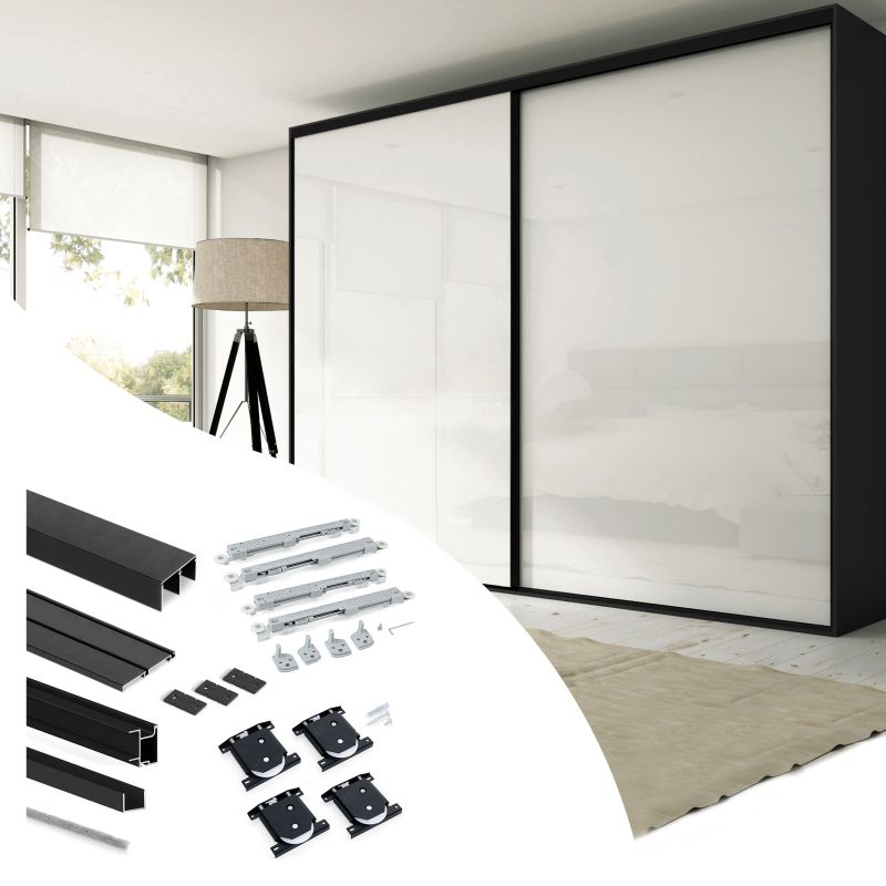 Kit pour armoire 2 portes coulissantes avec fermeture souple, panneaux épaisseur 19mm non inclus, Noir