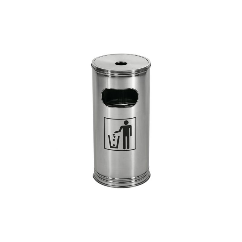Poubelle cendrier sur pied robuste avec une contenance de 15 litres en acier inoxydable. Le cendrier se compose d'un bac à cendres amovible et d'un insert galvanisé. Convient pour l'extérieur.