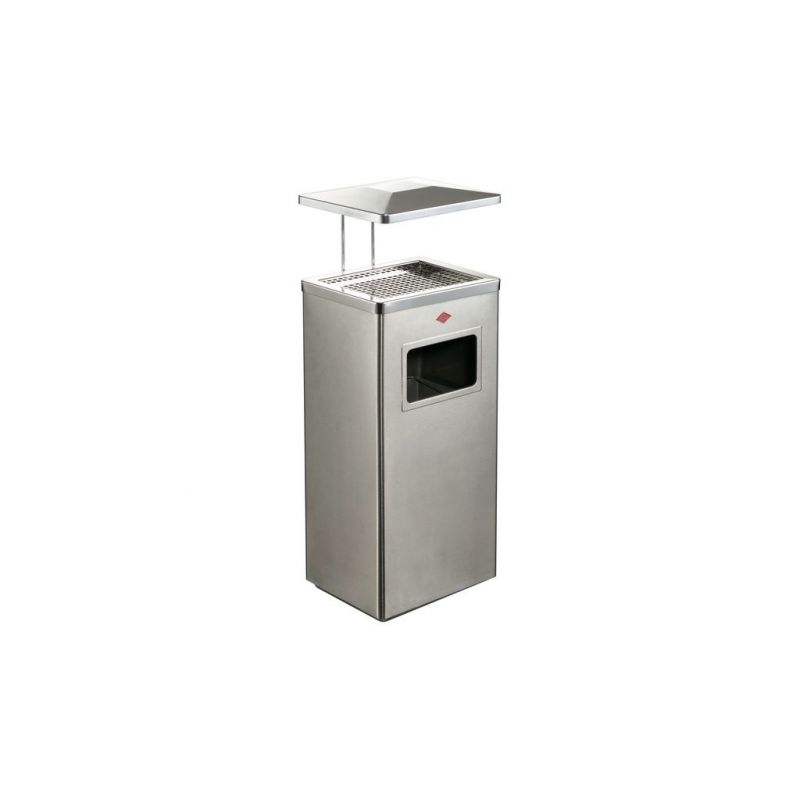 WESCO® Poubelle cendrier sur pied avec toit 19 L, acier inox mat