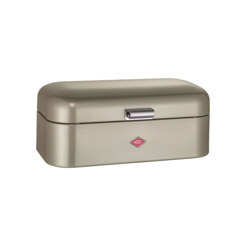 Cette grande huche à pain est dotée de trous d'aération à l'arrière qui assurent une ventilation optimale du contenu. Les charnières métalliques qui fixent le couvercle et la poignée sont en métal solide et résistent à beaucoup de choses. La boîte à pain Grandy est disponible sous de nombreuses couleurs, propre à la marque Wesco.