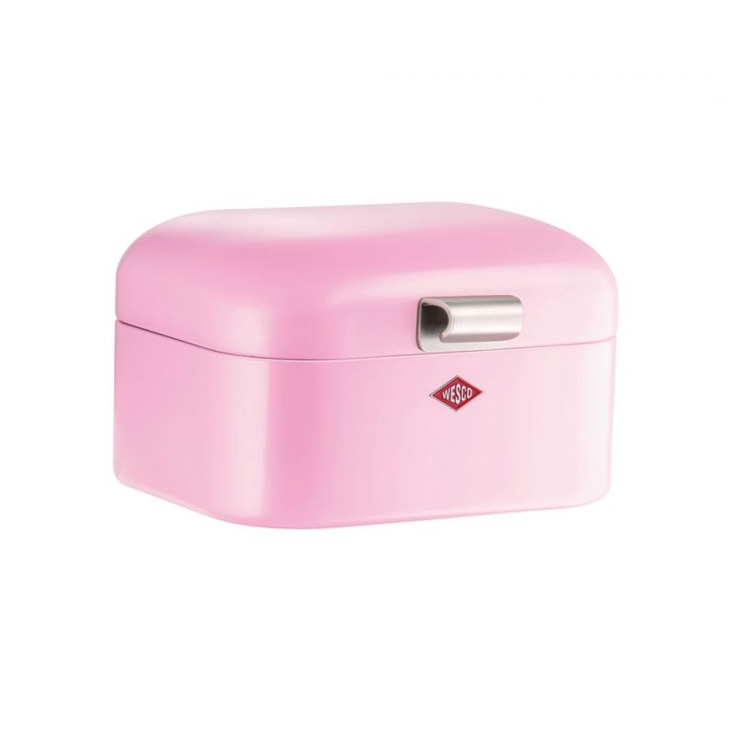 Grâce à ses trous d'aération à l'arrière, la Mini Grandy peut même être utilisée comme boîte à pâtisseries ou huche à pain. Les charnières métalliques solides et la poignée en métal rendent la petite boîte indestructible. Cette boîte à provisions au style rétro classique est disponible dans de nombreuses couleurs de Wesco.