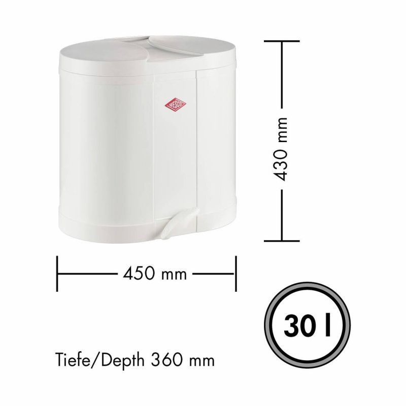 WESCO® Poubelle à pédale Eco 170, capacité 30 L, blanc
