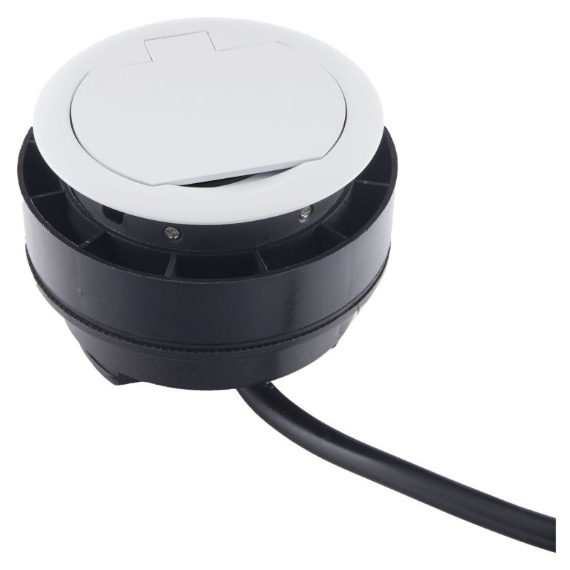 Bloc 1 prise + 1 USB RING à clapet affleurant à encastrer dans un plan de travail, Blanc mat (RAL9010)