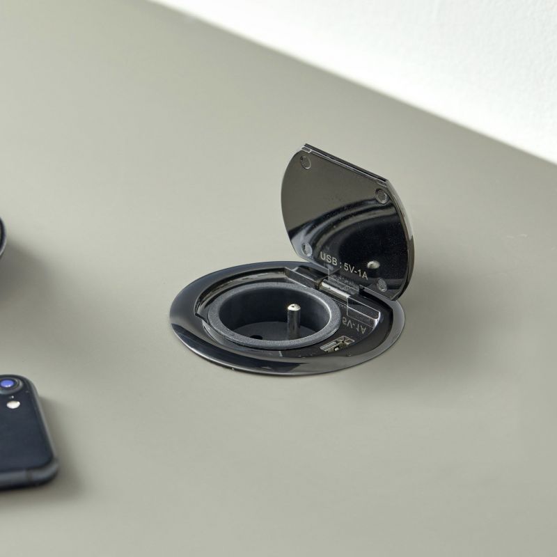 Bloc 1 prise + 1 USB RING à clapet affleurant à encastrer dans un plan de travail, Chrome noir