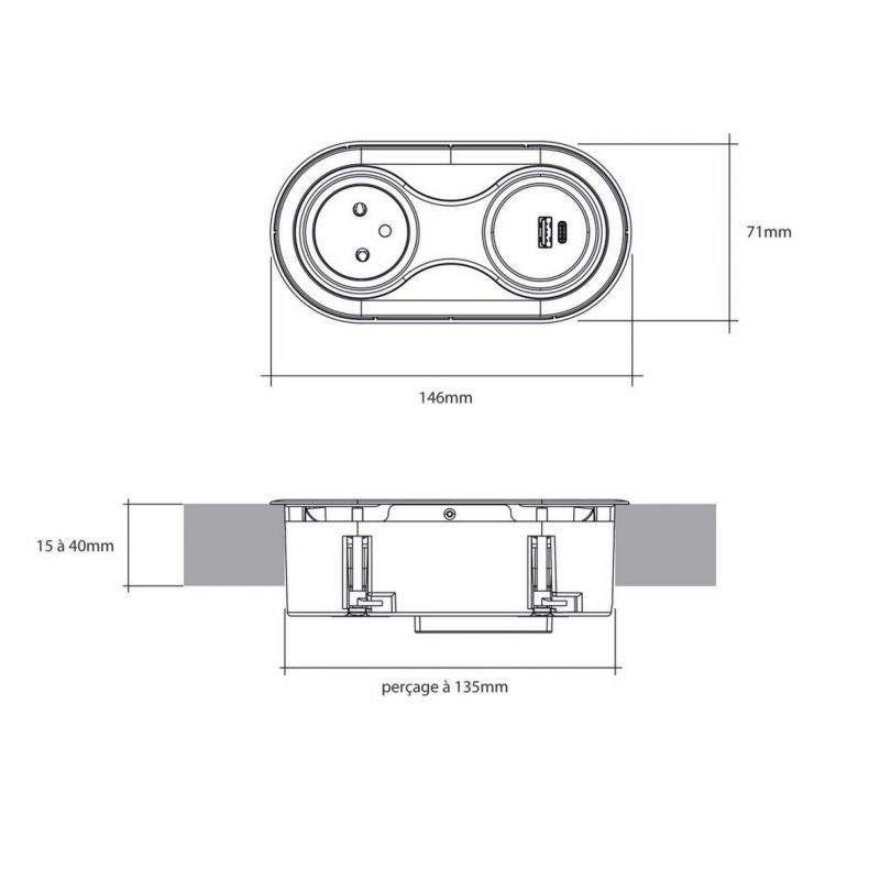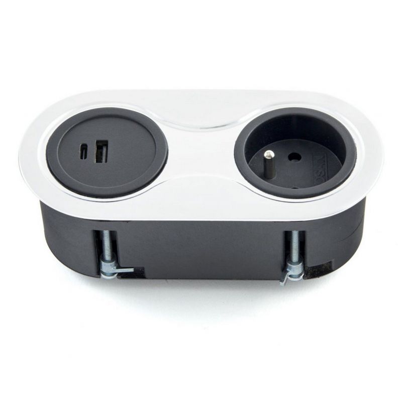 Bloc 1 prise + 1 USB-A + 1 USB-C INFINI sans clapet affleurant à encastrer dans un plan de travail, Blanc mat