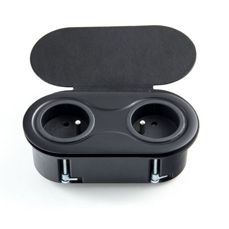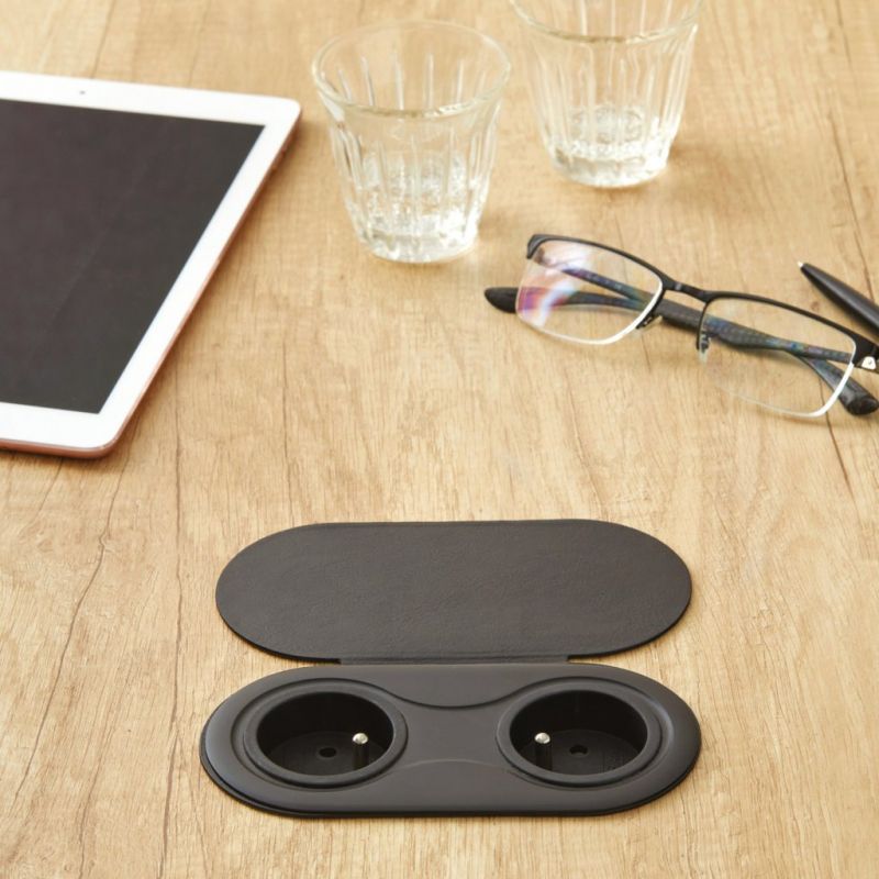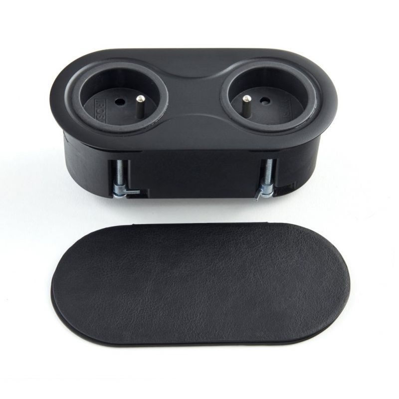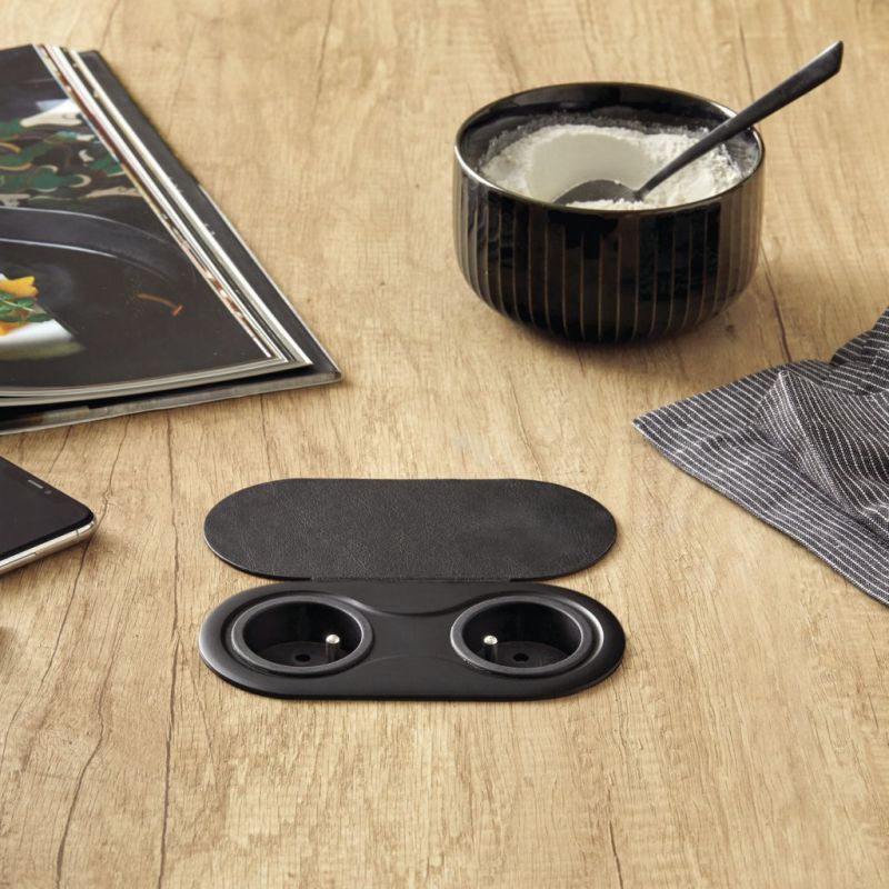 Bloc 2 prises INFINI avec clapet affleurant à encastrer dans un plan de travail, Noir mat
