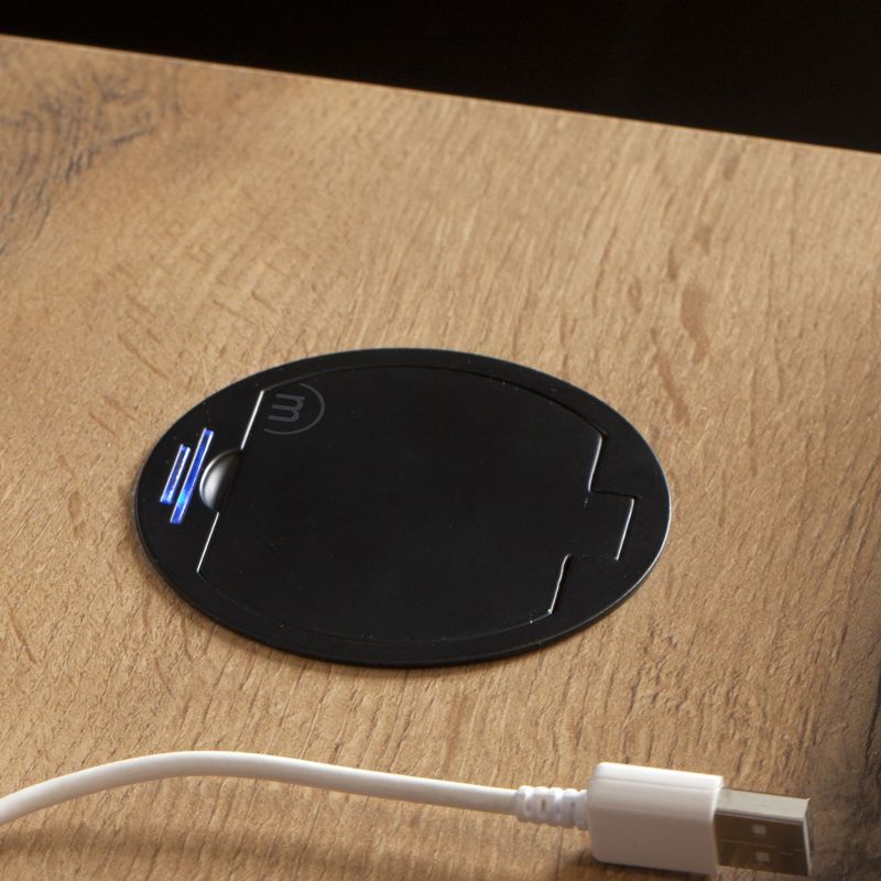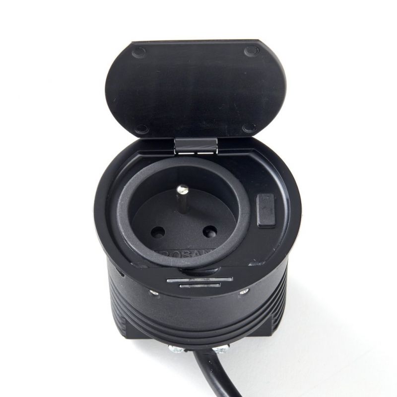Bloc prise + USB (1A - 5V) affleurant DISC avec clapet à encastrer dans un plan de travail de 5 à 45mm - finition noir mat (RAL 9005) - 16A - 230V - 2P+T