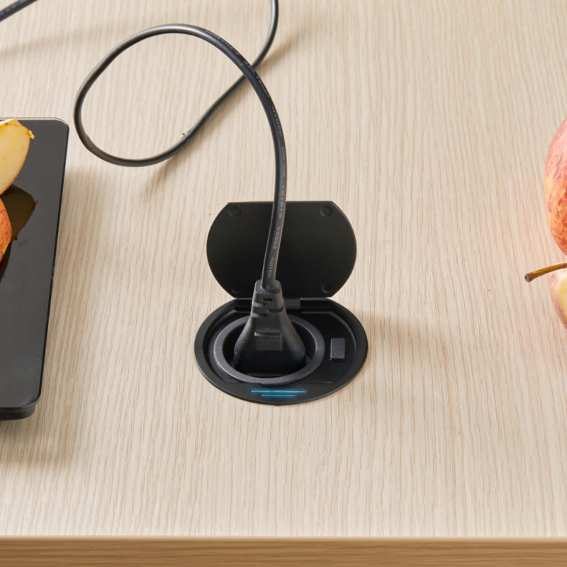 Bloc 1 prise DISC avec clapet affleurant à encastrer dans un plan de travail, Noir mat (RAL 9005)