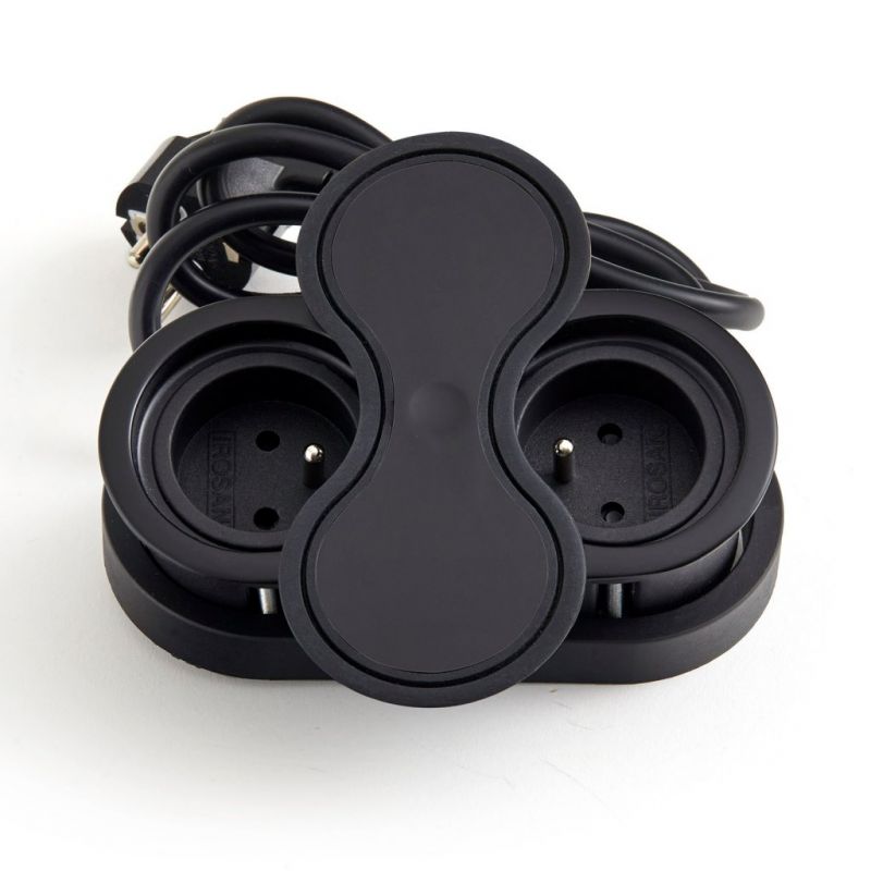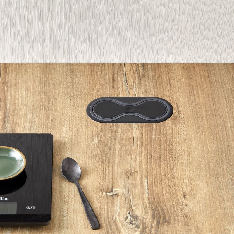 Bloc 2 prises EIGHT IP44 affleurant à encastrer dans un plan de travail, Noir mat