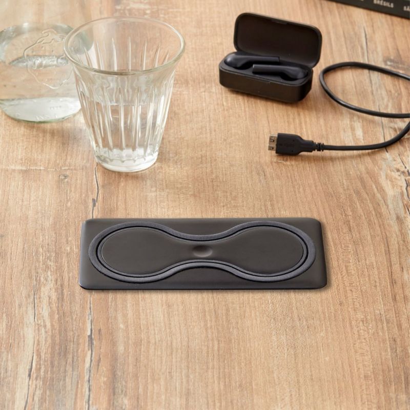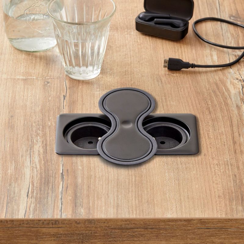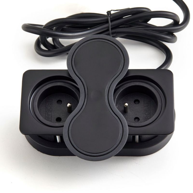 Bloc 2 prises EIGHT IP44 rectangulaire affleurant à encastrer dans un plan de travail, Noir mat
