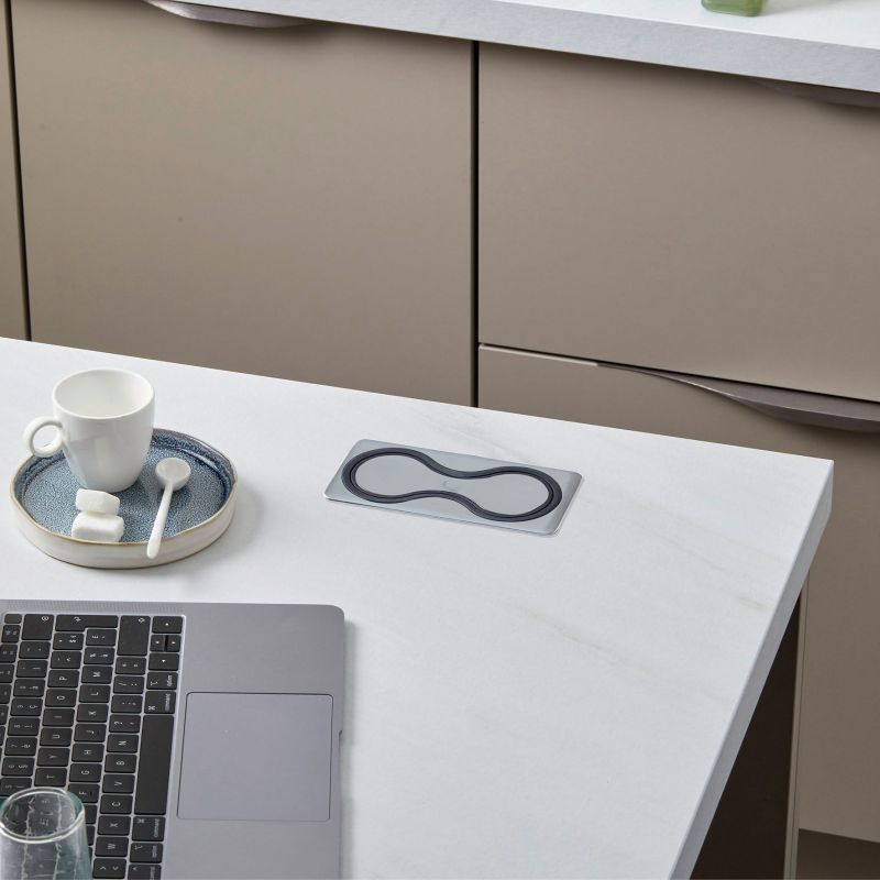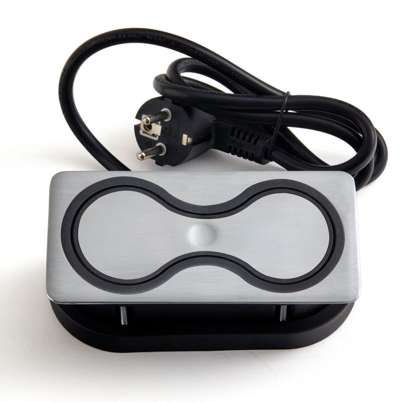 Bloc 2 prises EIGHT IP44 rectangulaire affleurant à encastrer dans un plan de travail, Inox brossé