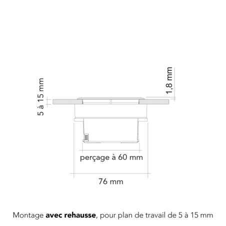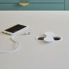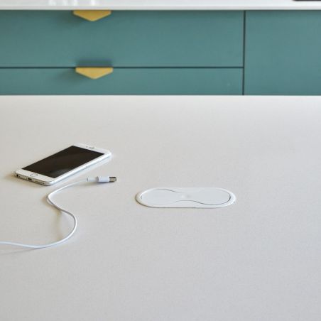 Grâce à sa réhausse fournie, l’EIGHT s’adapte aussi bien aux plans de travail fins à partir de 5 mm qu’aux plans plus épais jusqu’à 40 mm. Son clapet métallique ultra-plat, d’une épaisseur de seulement 1,8 mm, dissimule élégamment les prises tout en offrant une ouverture par simple pression. Robuste, sécurisé et pensé pour un usage quotidien, il apporte une alimentation accessible sans compromettre l’esthétique.