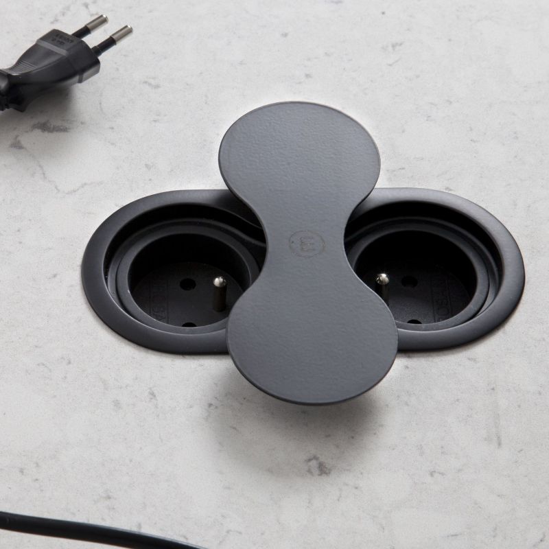 Bloc 2 prises EIGHT affleurant à encastrer dans un plan de travail, Noir mat (RAL9005)