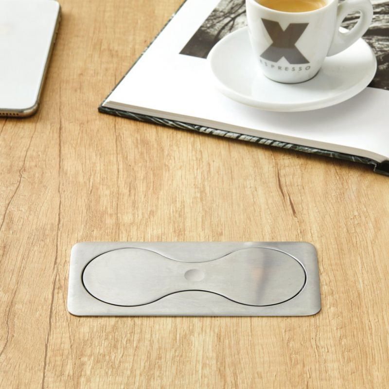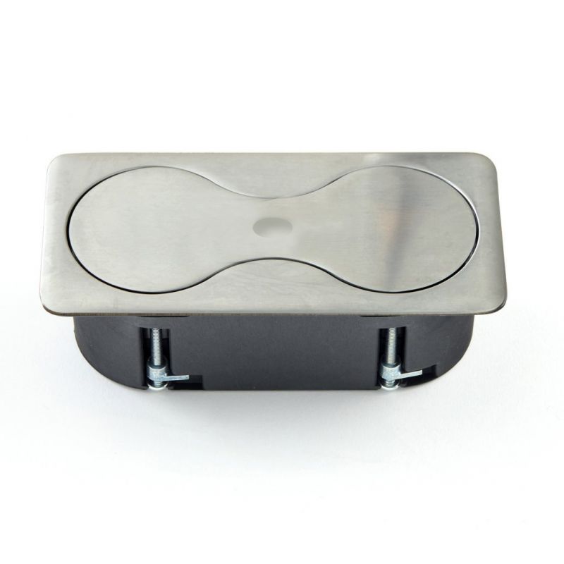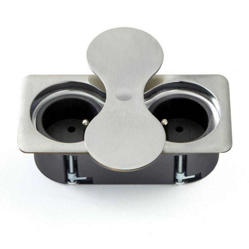 Bloc 2 prises EIGHT rectangulaire affleurant à encastrer dans un plan de travail, Inox brossé