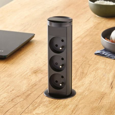 Bloc 3 prises (16A-230V) MINIBRICK rétractable - Noir- Diam.60mm