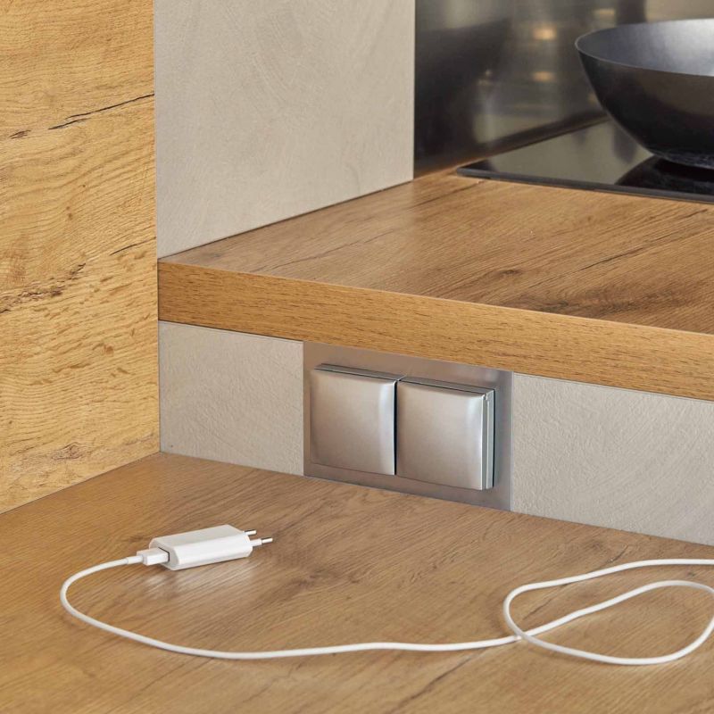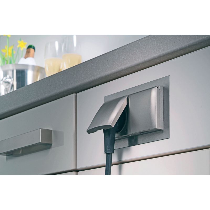 Prise double carrée avec clapet en ABS à encastrer - finition aluminium - 16A - 230V - 2P+T