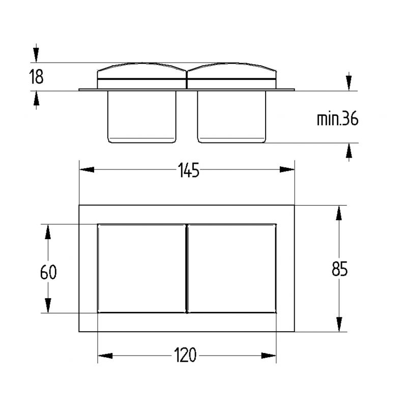 Double prise carrée avec clapet en ABS à encastrer - finition aluminium - 16A - 230V - 2P+T