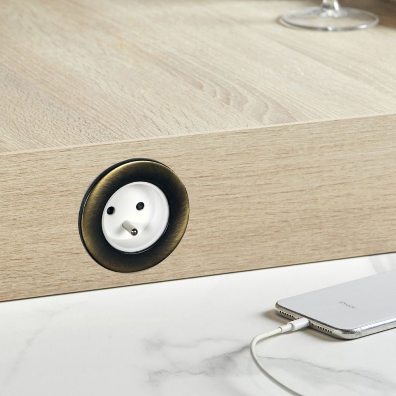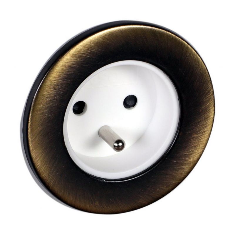 Prise ronde bronze 150v 10/16A 2 prises + 1 terre - A encastrer