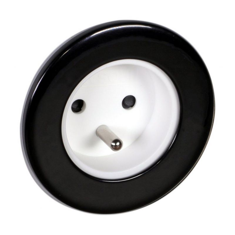 Prise ronde noire 150v 10/16A 2 prises + 1 terre - A encastrer