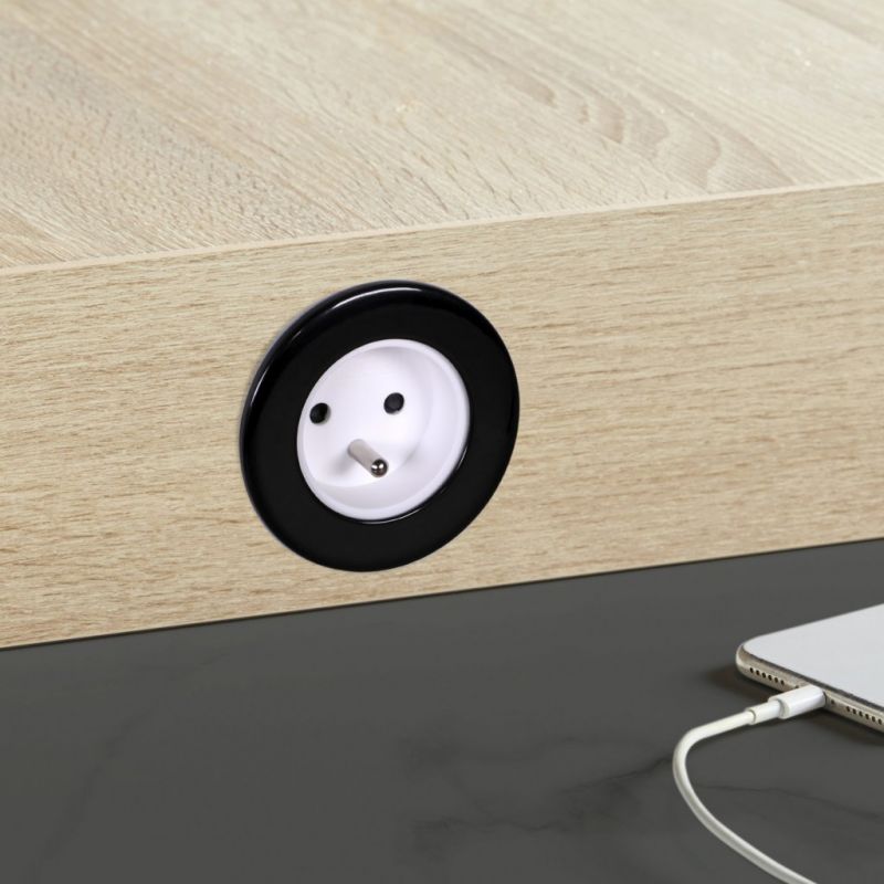 Prise simple ronde à encastrer - finition noir - 16A - 230V - 2P+T