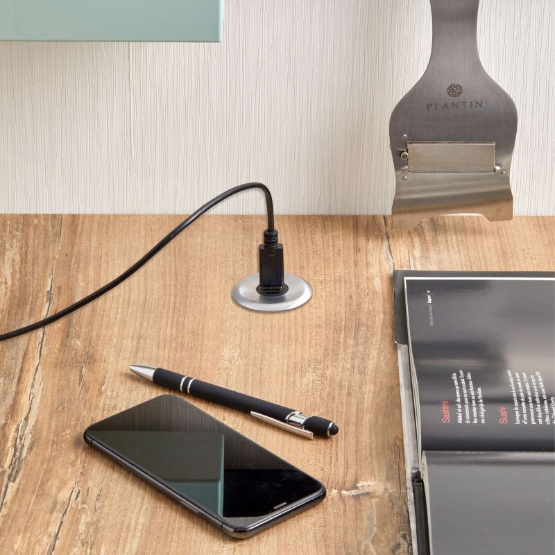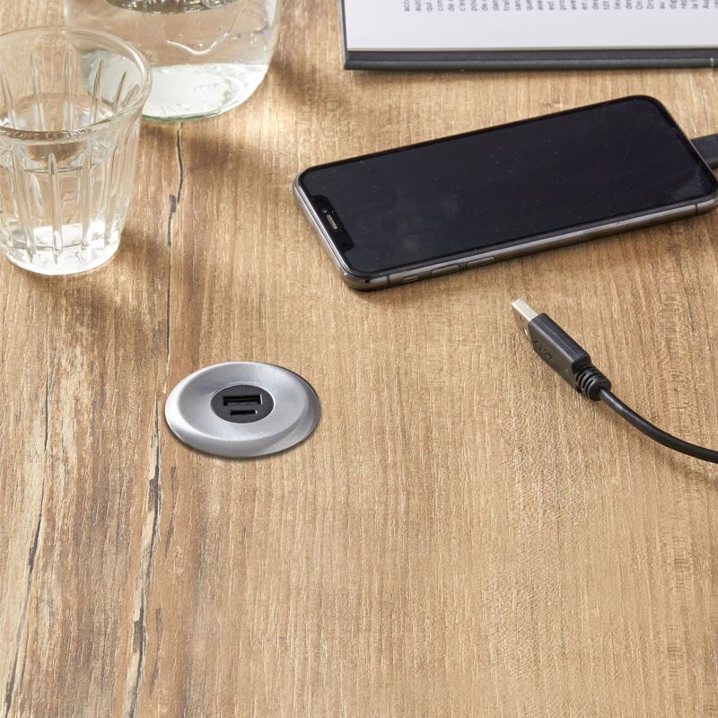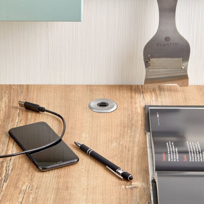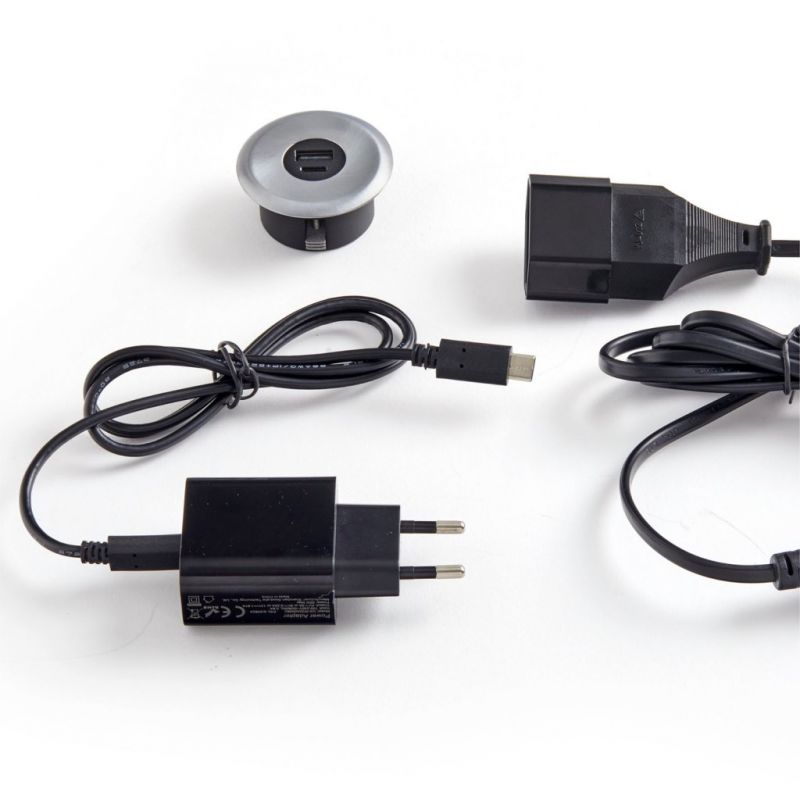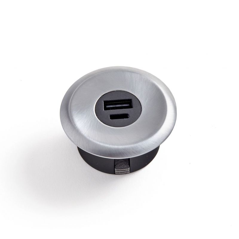 Bloc prise ATOMY 1 USB-A + 1 USB-C - 230V à encastrer - Finition Inox brossé