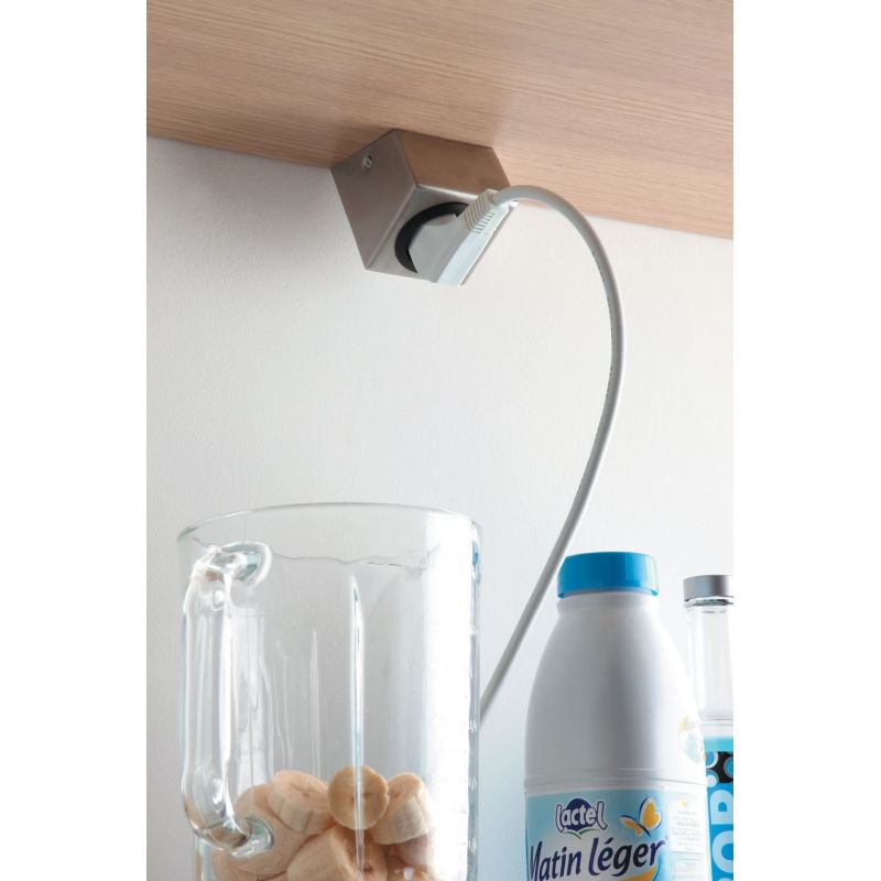 Bloc 1 prise carré (62 x 62 x 41) - finition inox brossé - 16A - 230V - 2P+T