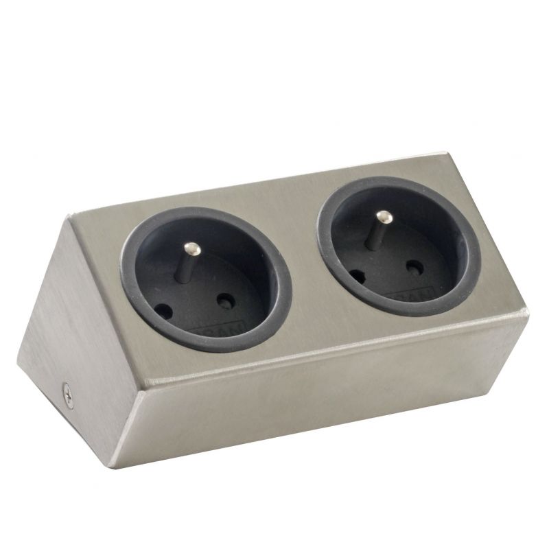 Bloc 2 prises inclinées (122 x 65 x 91) - finition inox brossé - 16A - 230V - 2P+T
