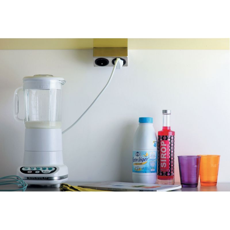 Bloc 1 prise carré (62 x 62 x 41) - finition inox brossé - 16A - 230V - 2P+T
