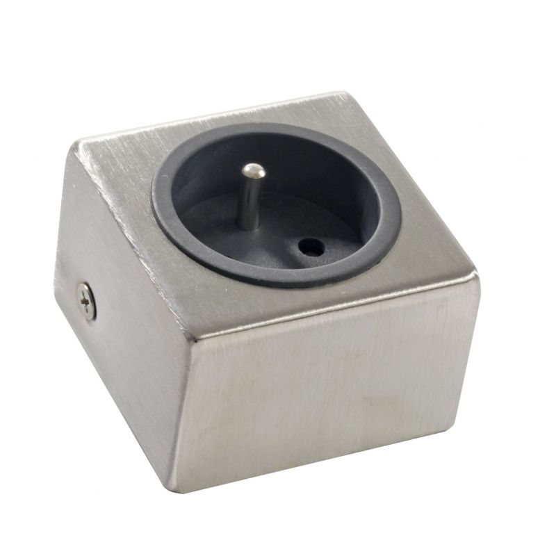 Bloc 1 prise carré (62 x 62 x 41) - finition inox brossé - 16A - 230V - 2P+T