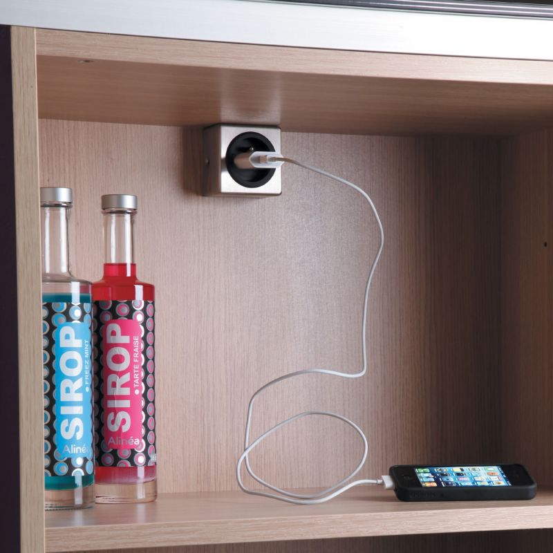 Bloc 1 prise incliné (91x 65 x 62) - finition inox brossé - 16A - 230V - 2P+T