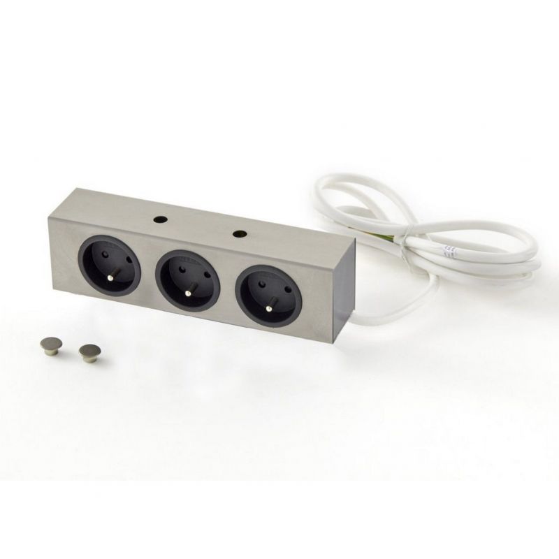 Bloc 3 prises (62x213x48mm ) - finition inox brossé - 16A - 240V - 2P+T