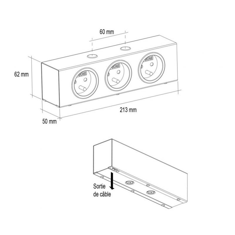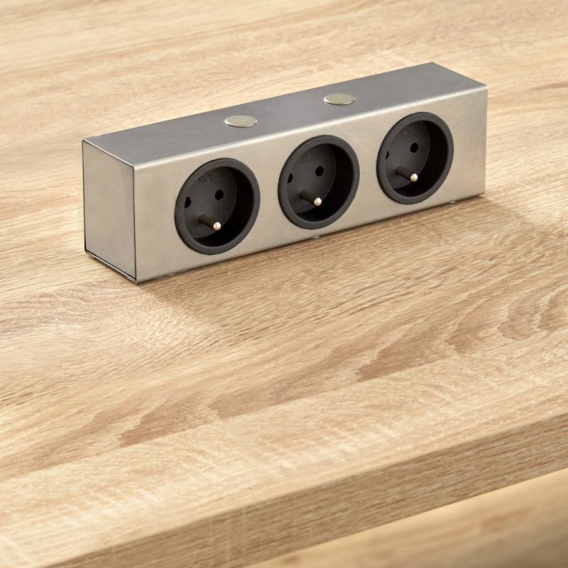 Bloc central 3 prises (62x213x48mm ) - finition inox brossé - 16A - 240V - 2P+T