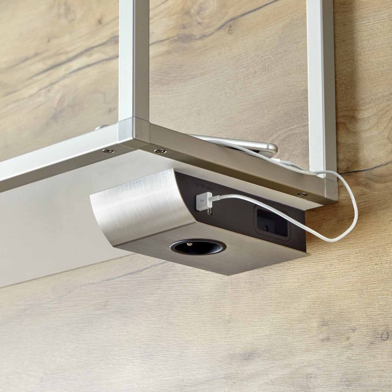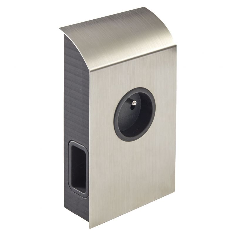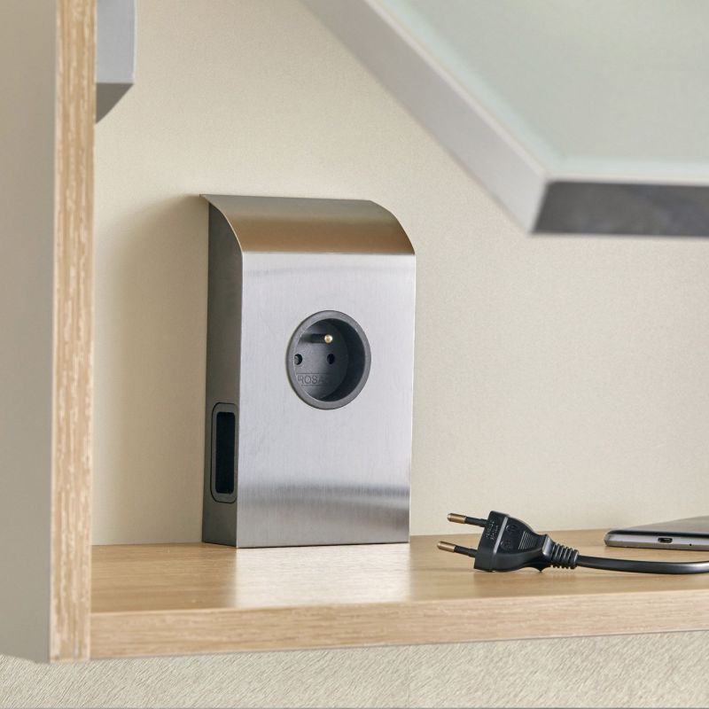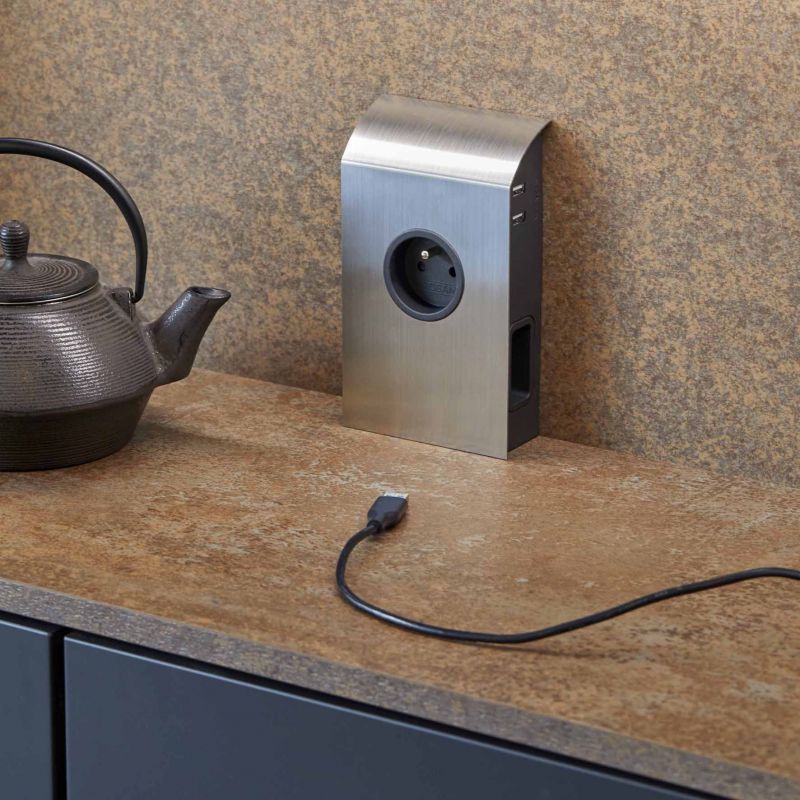 Bloc prise mural MINI BORN - Finition Inox brossé - 1 prise 16A + USB-A + USB-C