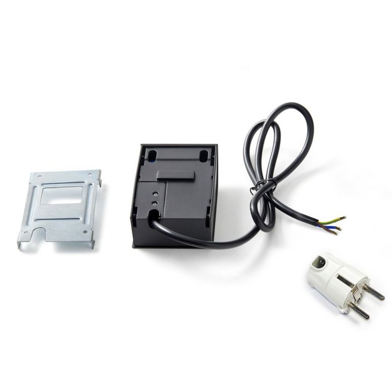 Bloc prises mural BORN composé d'1 prise 16A, de 2 prises 6A et de 2 ports USB (2A - 5V) - finition noir mat (RAL 9005)- 240V