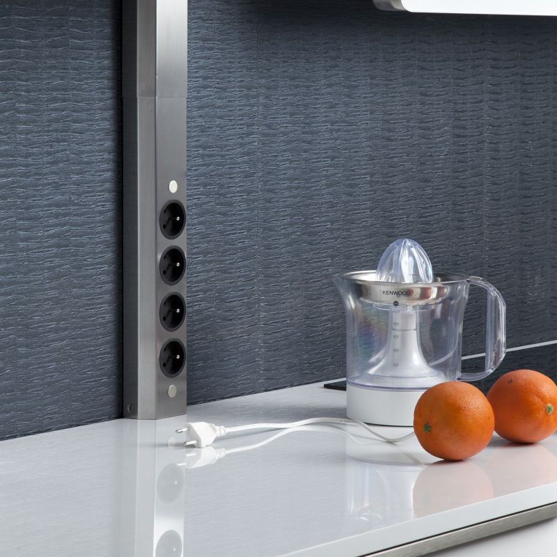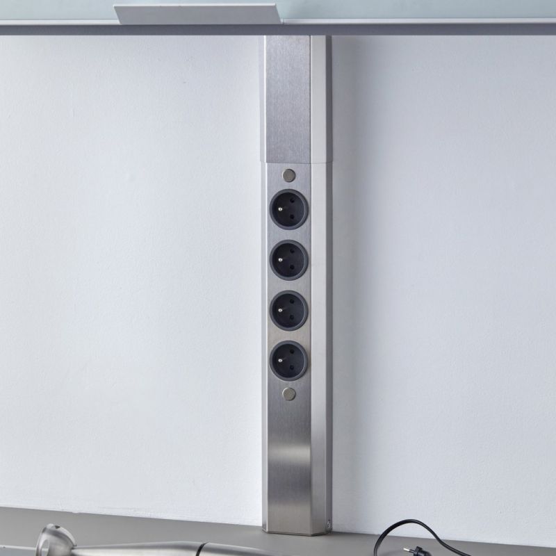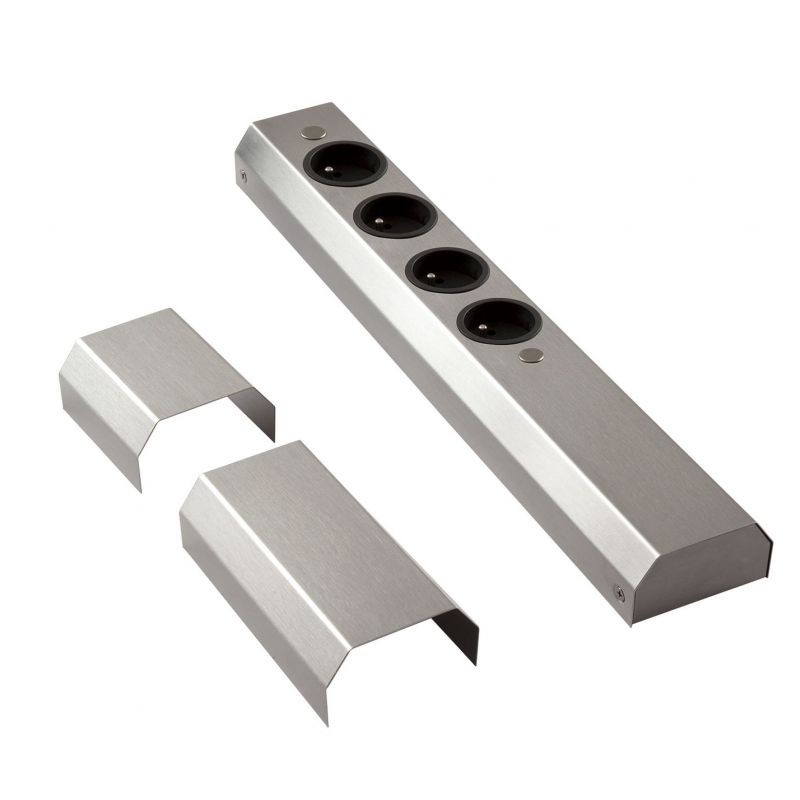Bloc 4 prises frontal (460 x 80 x 42) livré avec 2 pièces de réglage pour ajuster la hauteur, Inox brossé