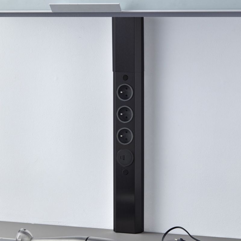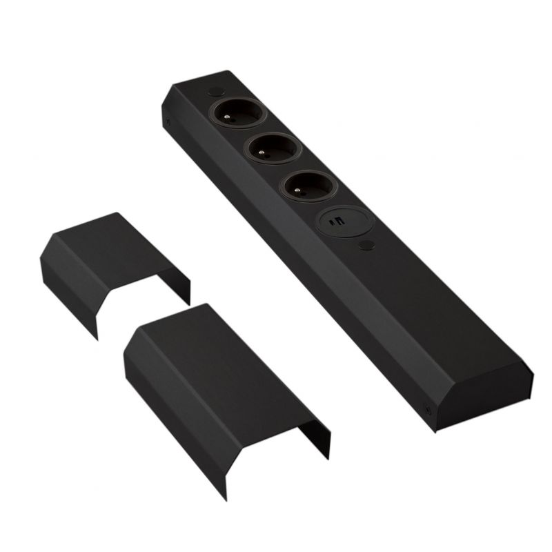 Bloc 3 prises frontal + 1 USB-A + 1 USB-C (460 x 80 x 43) - Livré avec 2 pièces de réglage pour ajuster la hauteur, Noir mat
