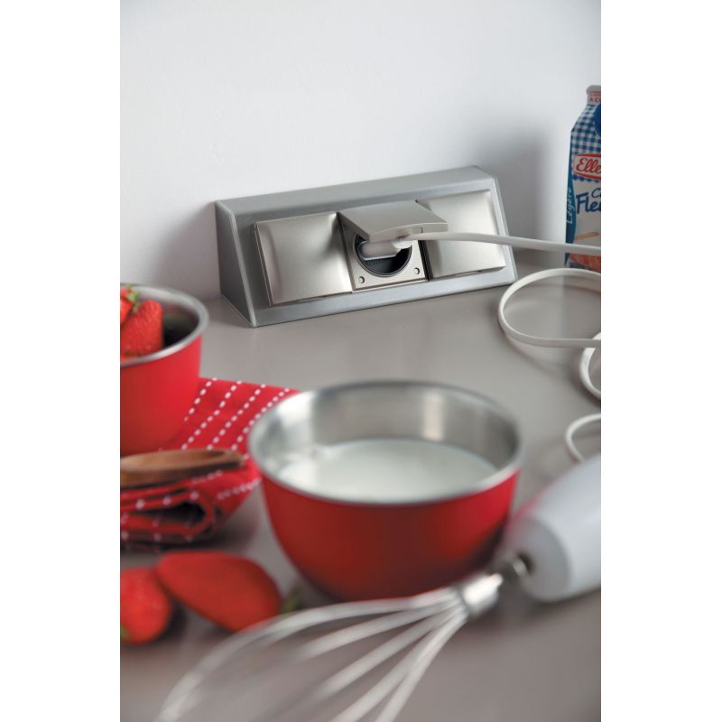 Bloc 2 prises en ABS multi-positions avec clapet (150 x 75 x 74) - finition inox brossé - 10/16A - 230V - 2P+T