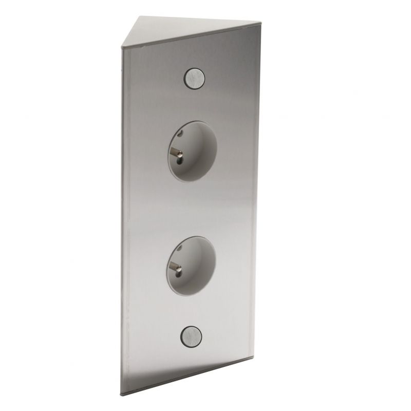 Bloc 2 prises d'angle (240 x 83 x 83) - finition inox brossé - côtés beige - 16A - 230V - 2P+T