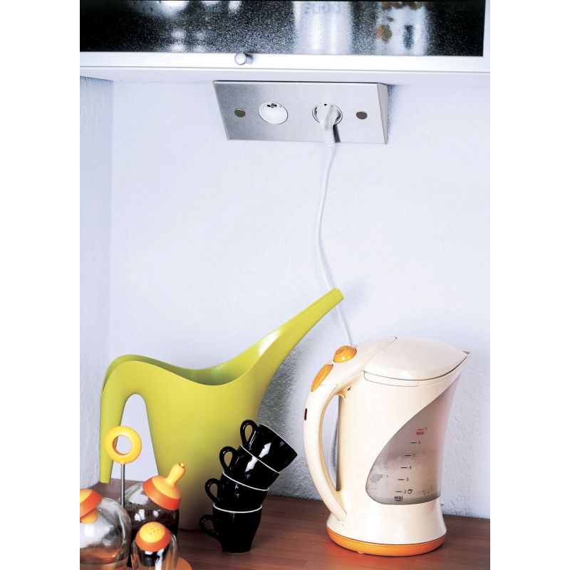 Bloc 2 prises d'angle (240 x 83 x 83) - finition inox brossé avec côtés couleur beige - 16A - 230V - 2P+T