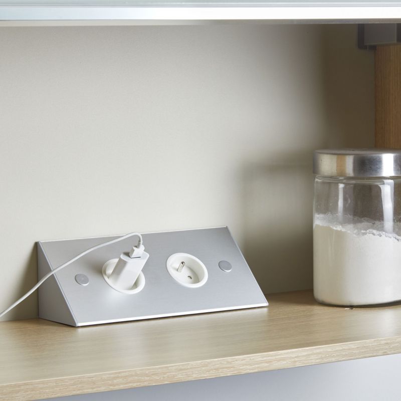 Bloc 2 prises d'angle (240 x 83 x 83) - finition aluminium - côtés gris - 16A - 230V - 2P+T