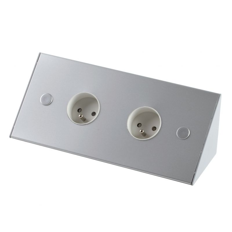 Bloc 2 prises d'angle (240 x 83 x 83) - finition aluminium - côtés gris - 16A - 230V - 2P+T