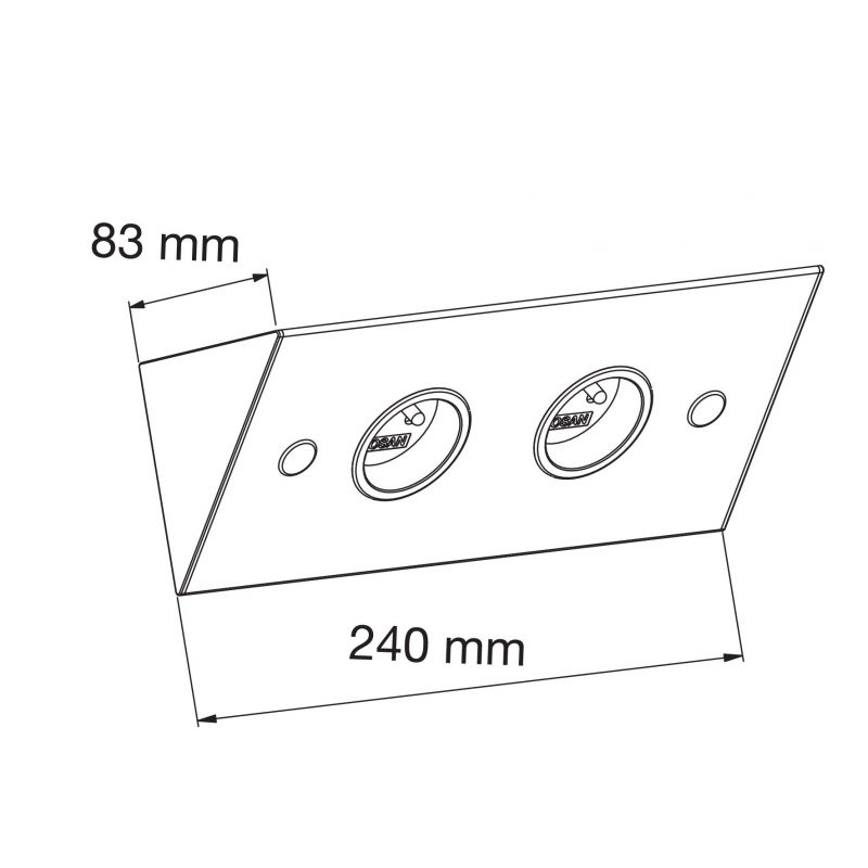 Bloc 2 prises d'angle (240 x 83 x 83) - finition aluminium avec côtés couleur gris - 16A - 230V - 2P+T